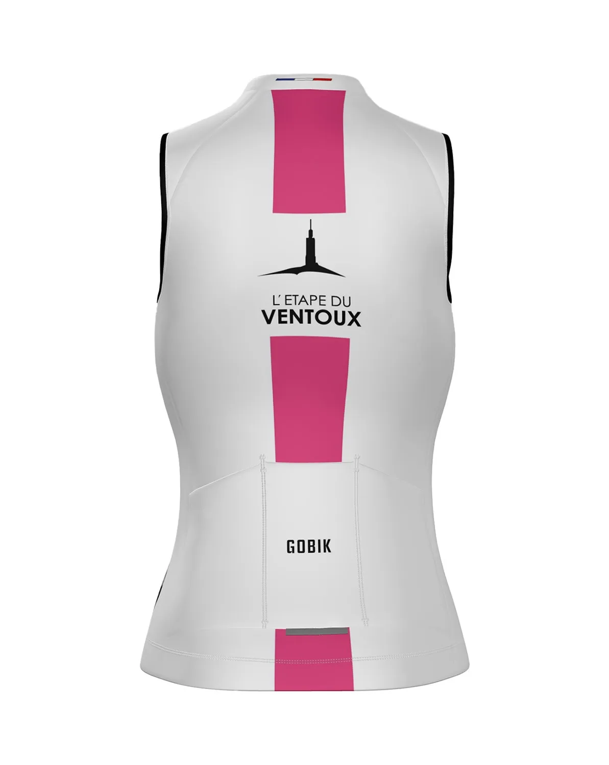 Arborant une teinte blanche épurée, le maillot est accentué par un trait rose et un trait noir, créant un look moderne et élégant tout en assurant une bonne visibilité. Le marquage « Mont Ventoux » sur le maillot établit un lien fort avec cette montagne emblématique, évoquant la magnifique vue sur la hauteur du Mont Ventoux et l’antenne qui surplombe le paysage depuis la montée du col.
